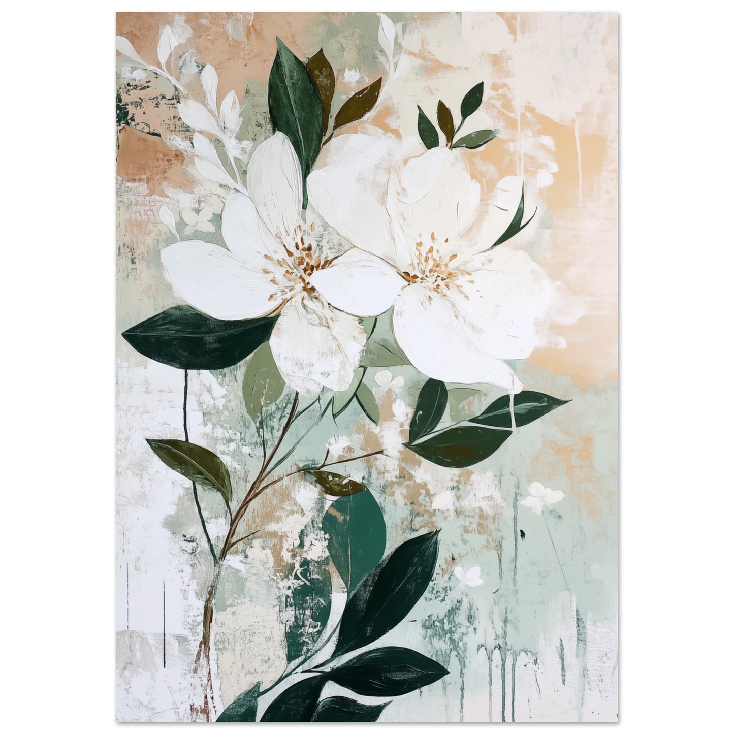 "Spring Magic" is a stunning work of art that captures the essence of spring in an abstract floral composition. The delicate white and green tones are complemented by warm accents, creating a harmonious and lively atmosphere. This picture brings the fresh beauty of nature into your home and is perfect for embellishing living spaces with a touch of elegance and lightness. Ideal for modern interiors looking for a natural and artistic accent.