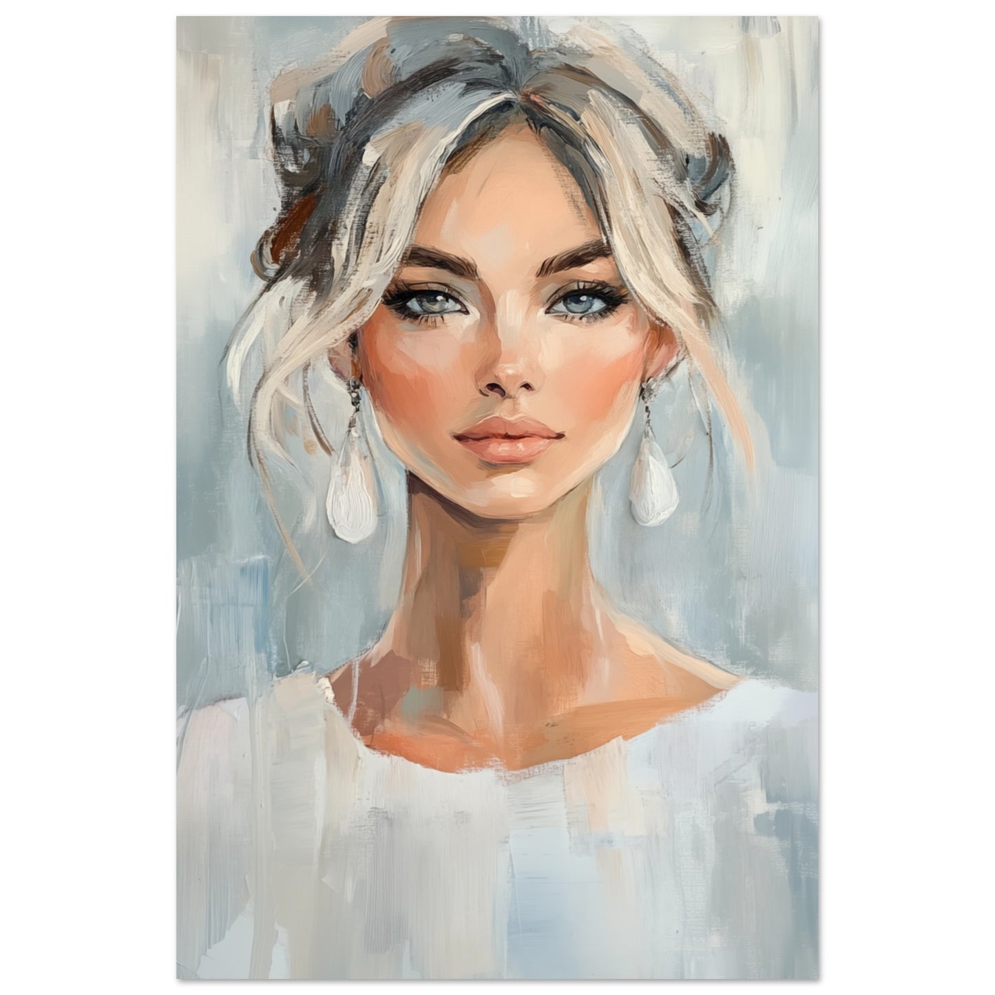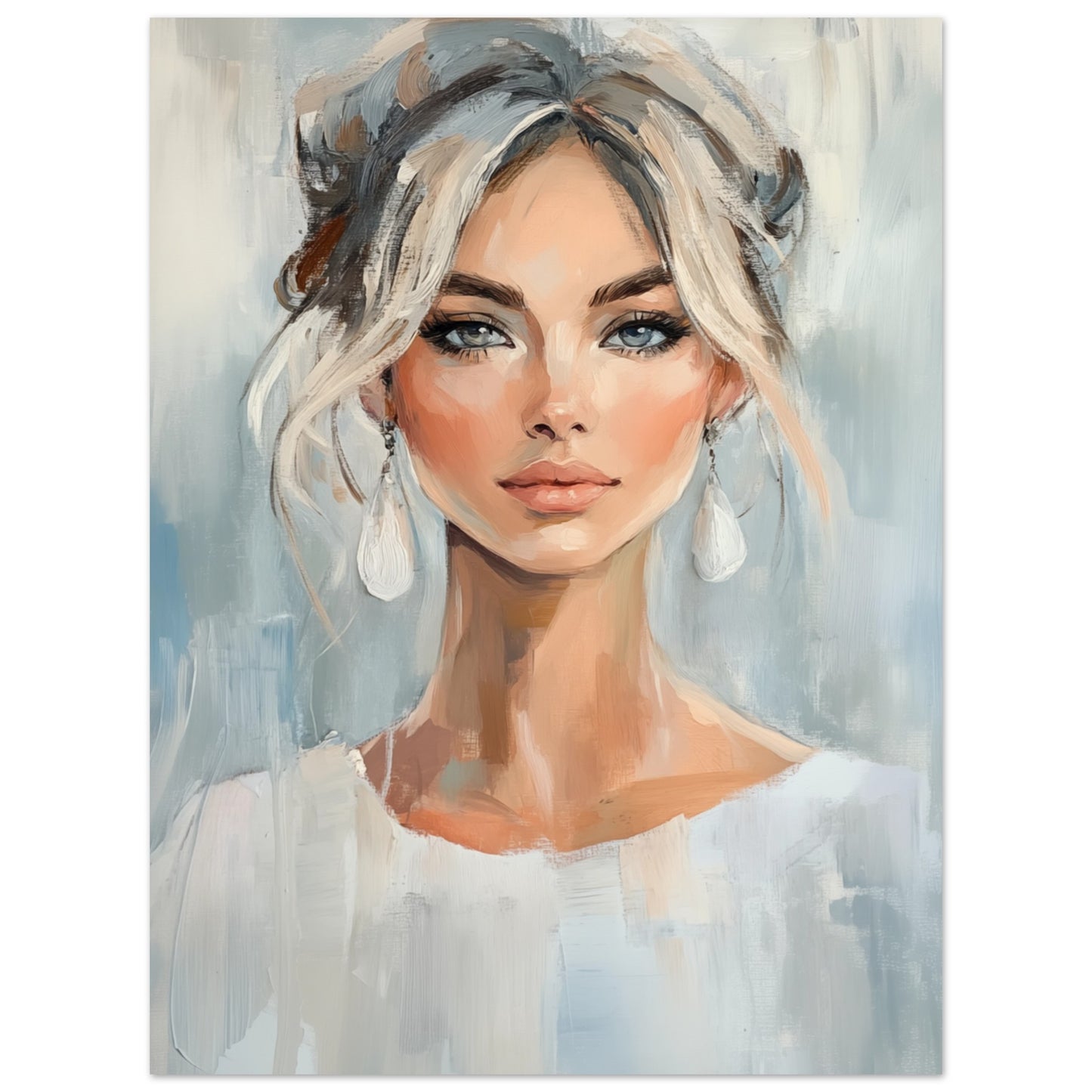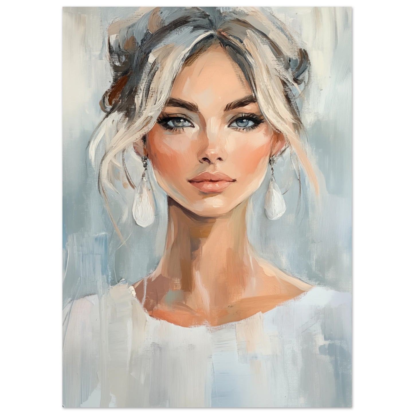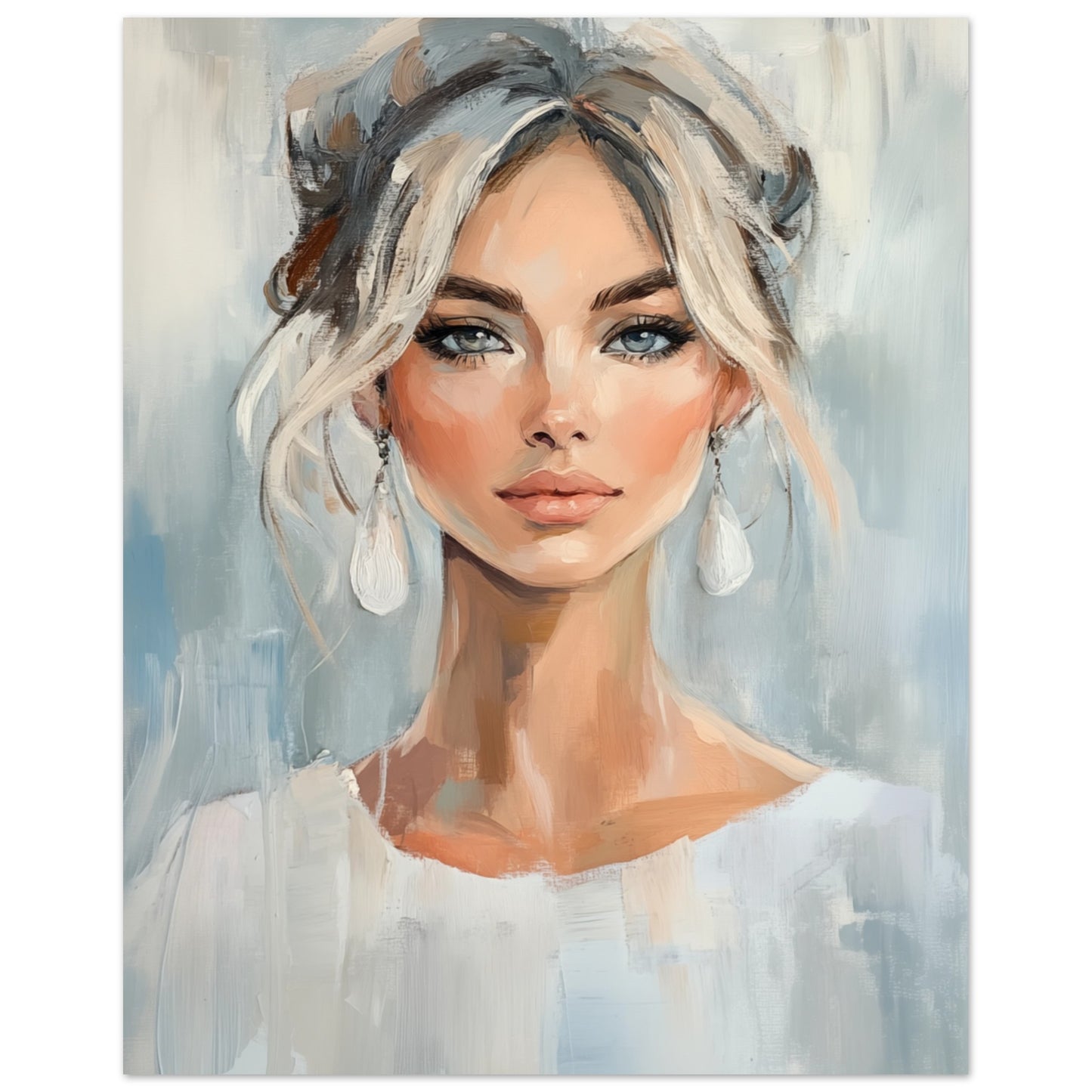 "Gentle Beauty" shows a young woman in an impressionistic style, depicted in delicate pastel tones and with soft brushstrokes. The light color palette and dreamy depiction create an atmosphere of lightness and calm. This picture is ideal for rooms that should radiate a gentle and elegant mood and offers a touch of feminine grace.