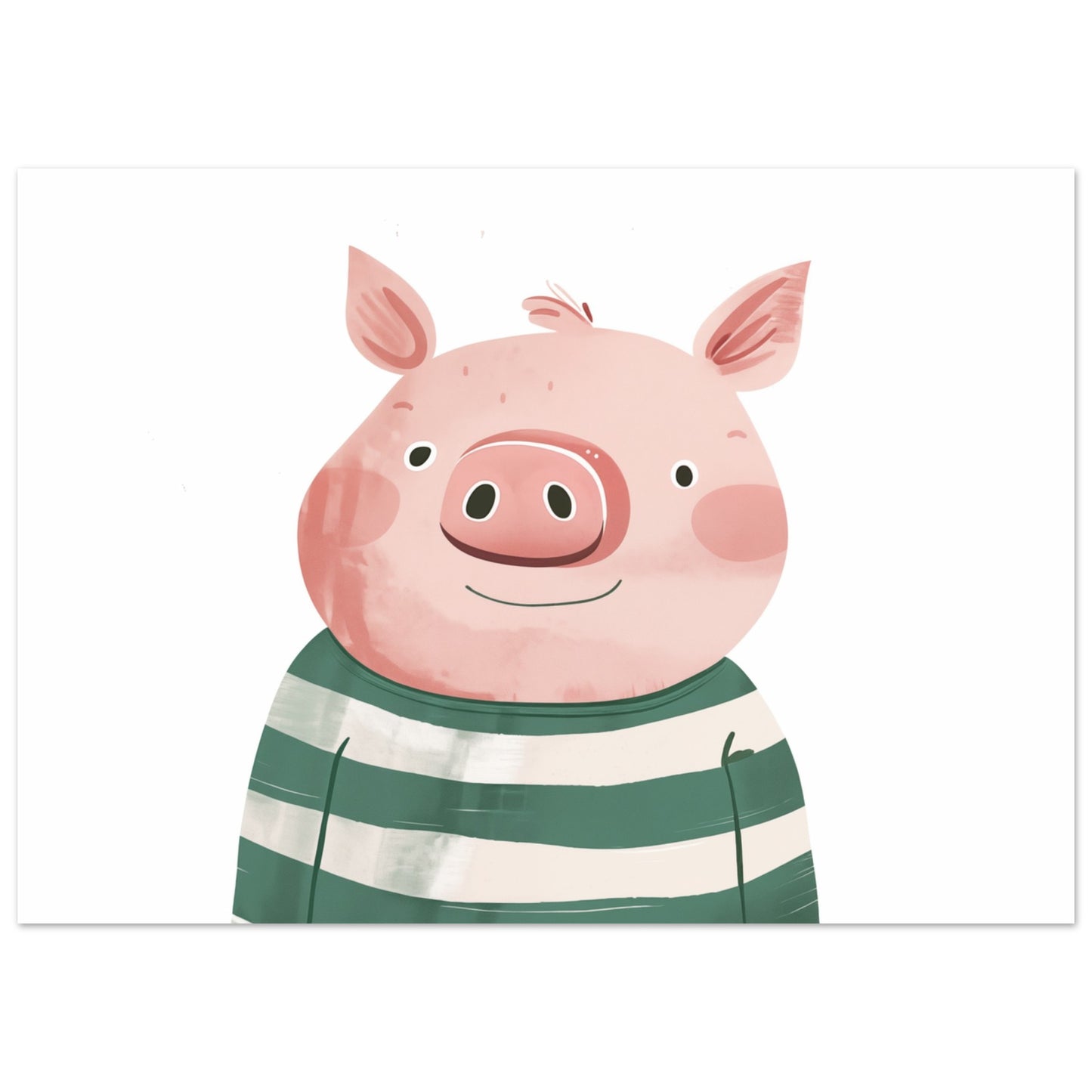 Hanky is no ordinary pig! With his striking green and white striped sweater and a twinkle in his eye, he is the happiest pig in the whole country. Whether he is playing in the mud or admiring flowers, Hanky is always full of joy and spreads good cheer. His playful grunts and inquisitive nature make him the favorite of all the animals in the farm valley. The poster is ideal for children's rooms that want to exude a happy, loving atmosphere.