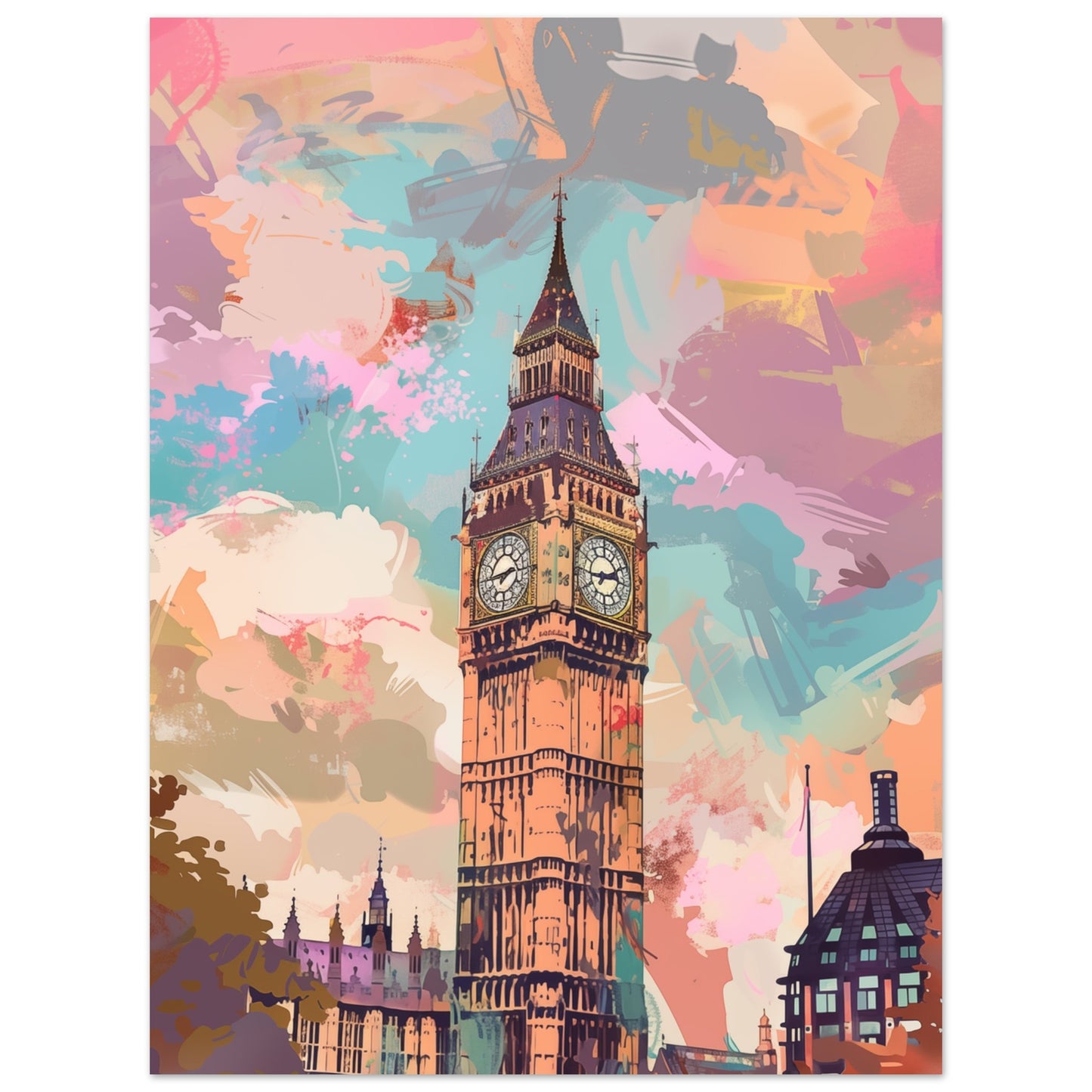 London's Canvas offers a creative reinterpretation of the famous Big Ben. With vibrant splashes of color and a modern perspective, this artwork captures the vibrant energy of London. Perfect for travel lovers who love urban adventure, it brings the spirit of the British capital right into your home. This poster is ideal for enriching home and office spaces with a touch of dynamic vibrancy and cosmopolitan flair.