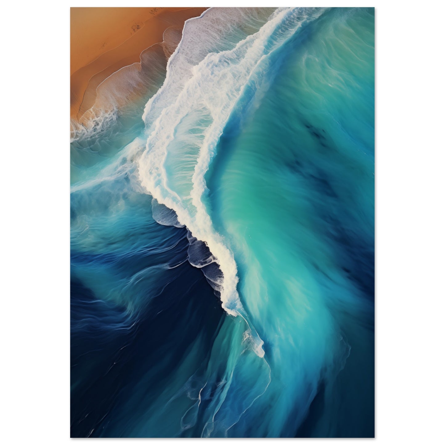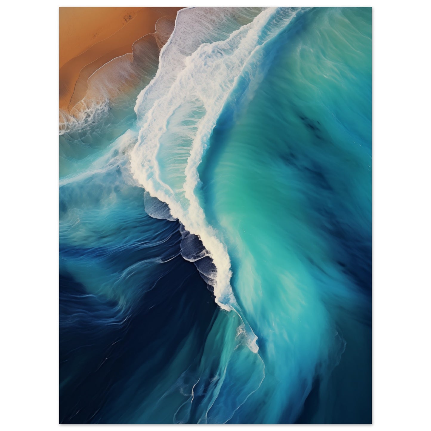 "Oceanic Divide" captures the mesmerizing scene where the turquoise sea meets the golden sand . The dynamic waves and foaming spray create a lively, almost moving image that reflects the power and beauty of the sea . Perfect for rooms that want to create an energetic yet calming atmosphere.