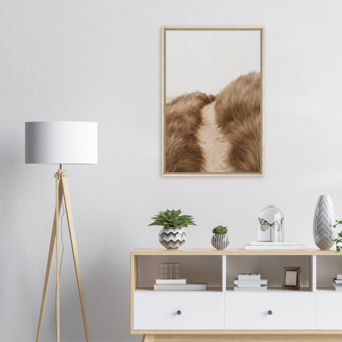 Lassen Sie die Gelassenheit der Natur auf sich wirken mit diesem minimalistischen Poster, das einen sanften, sepiafarbenen Pfad durch die Küstendünen zeigt. Die ruhige Komposition und die weichen Töne schaffen eine beruhigende Atmosphäre und machen es zur idealen Dekoration für jeden Raum, der nach Ruhe und einer Verbindung zur Natur sucht. Dieses Kunstwerk fängt die stille Schönheit von Küstenlandschaften ein und lädt zum Entspannen und Nachdenken ein.