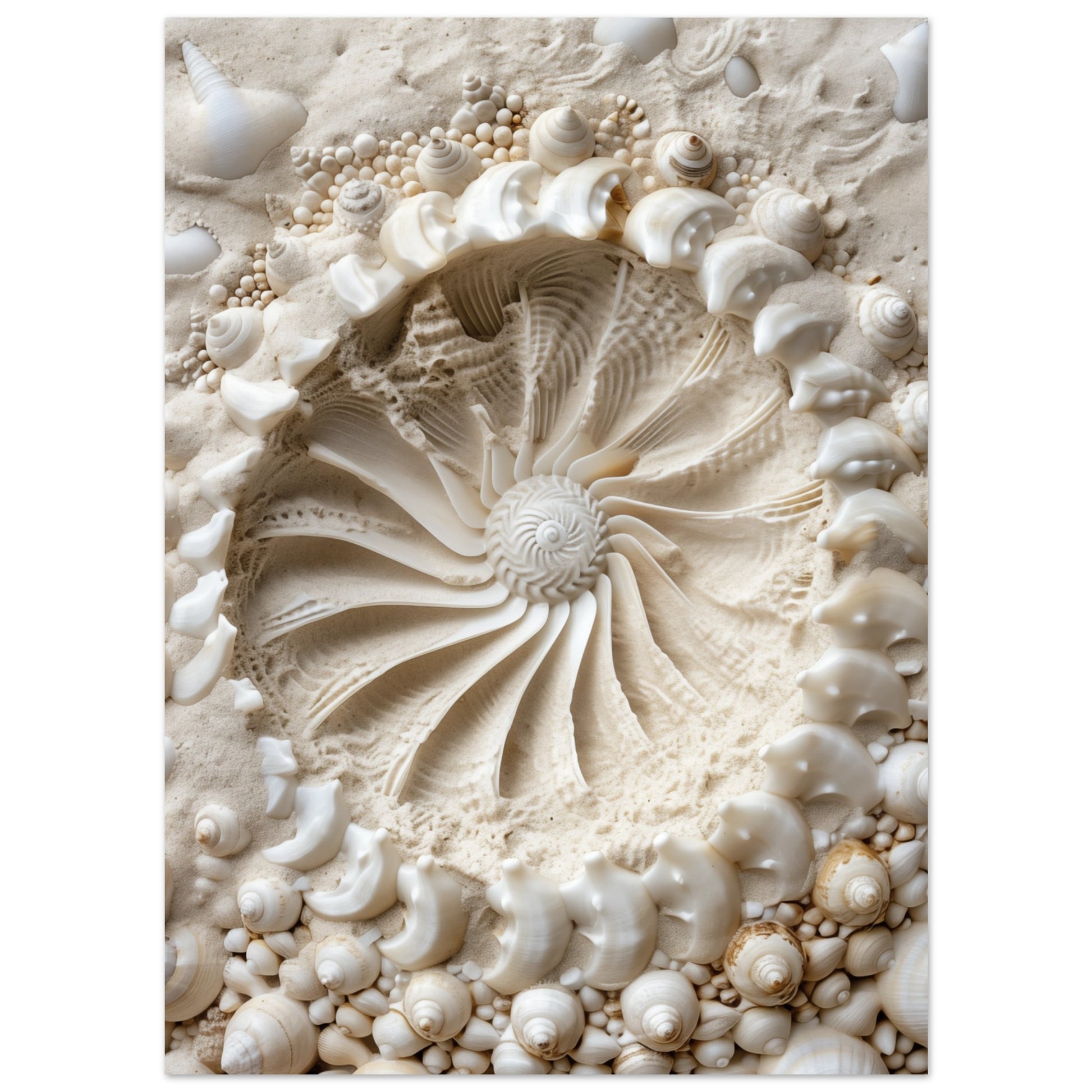 This impressive poster features an artistic arrangement of white shells and sand, arranged in a spiral pattern. Ideal for anyone who appreciates a piece of nature and artistic craftsmanship , it offers a unique decoration for any wall. Perfect for living spaces that are looking for a natural and inspiring atmosphere, this artwork brings calm and elegance to your home.