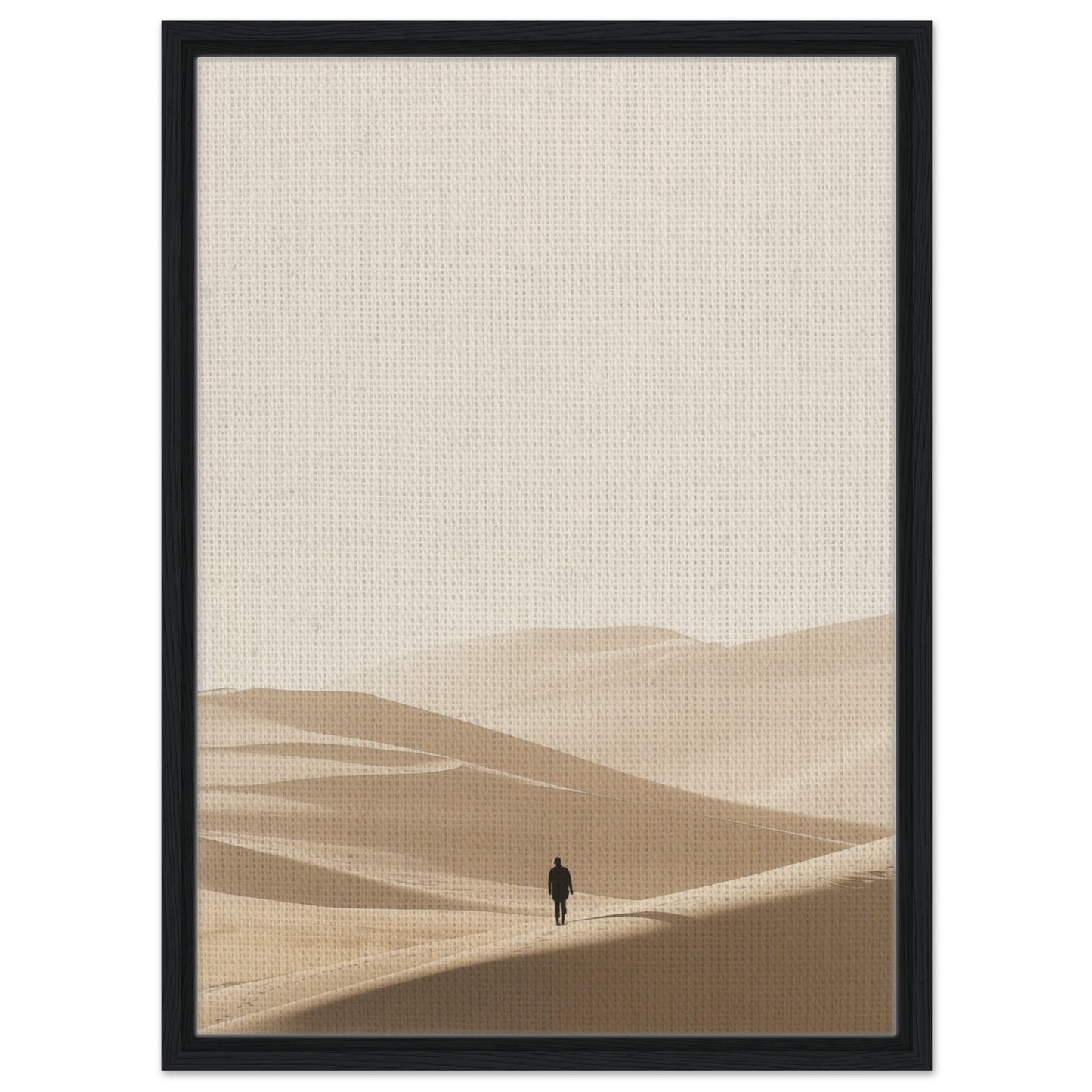 Découvrez la majesté paisible de notre paysage désertique grâce à ce design minimaliste. La représentation d'un randonneur solitaire traversant des dunes ondulantes symbolise le voyage et la quête de l'inconnu. Les tons beiges et bruns apaisants confèrent à l'image une élégance intemporelle. Idéale pour les maisons et bureaux modernes privilégiant la tranquillité et la simplicité, cette affiche apporte clarté visuelle et profondeur à votre décoration.