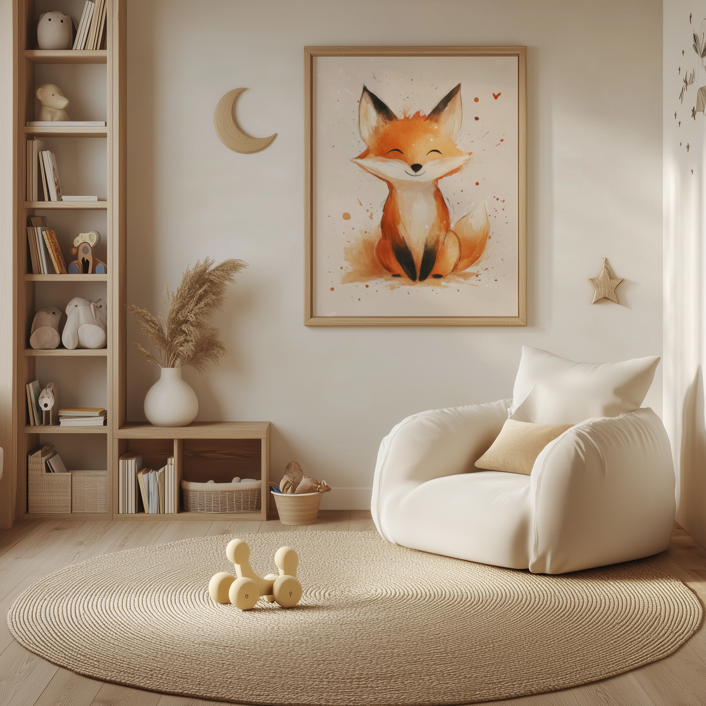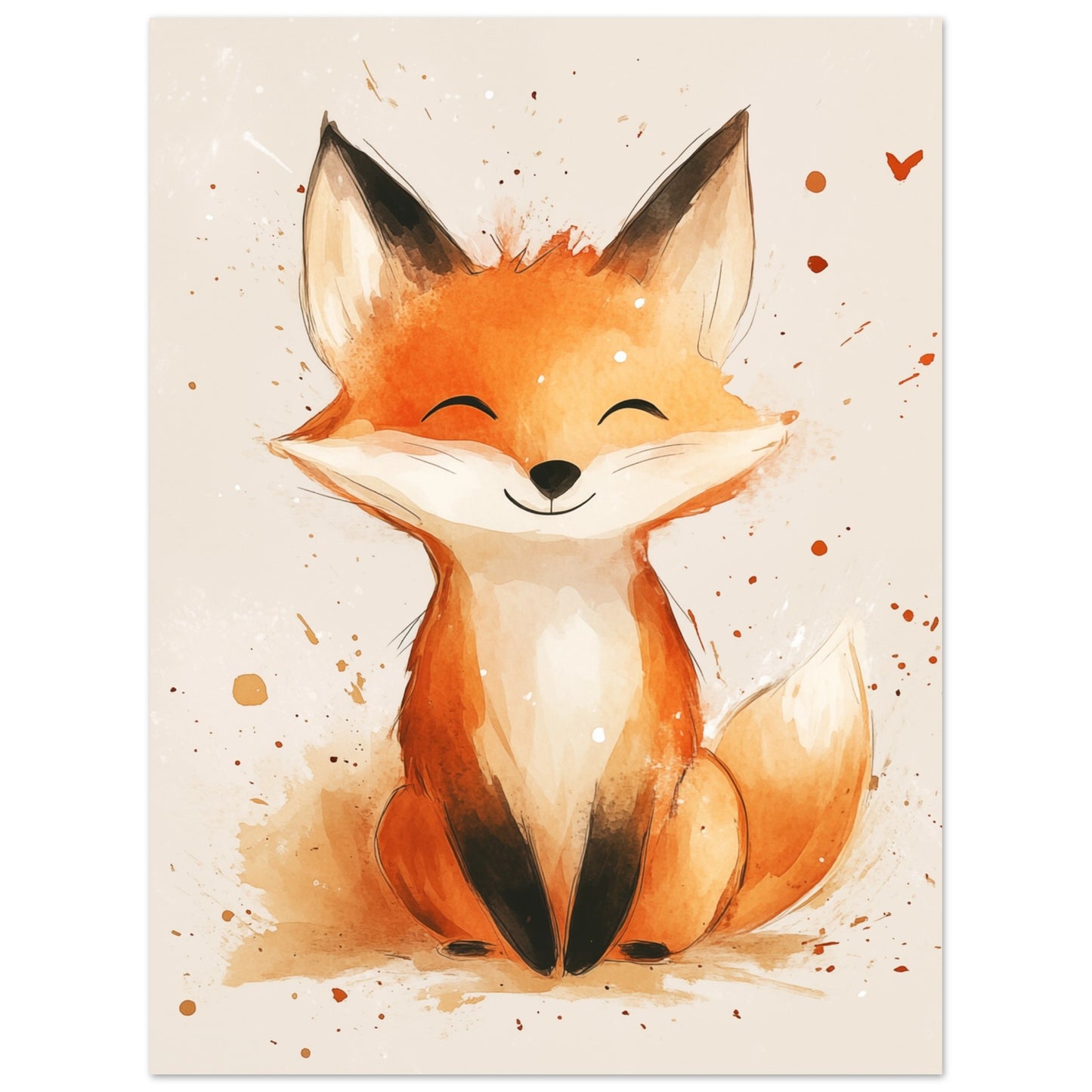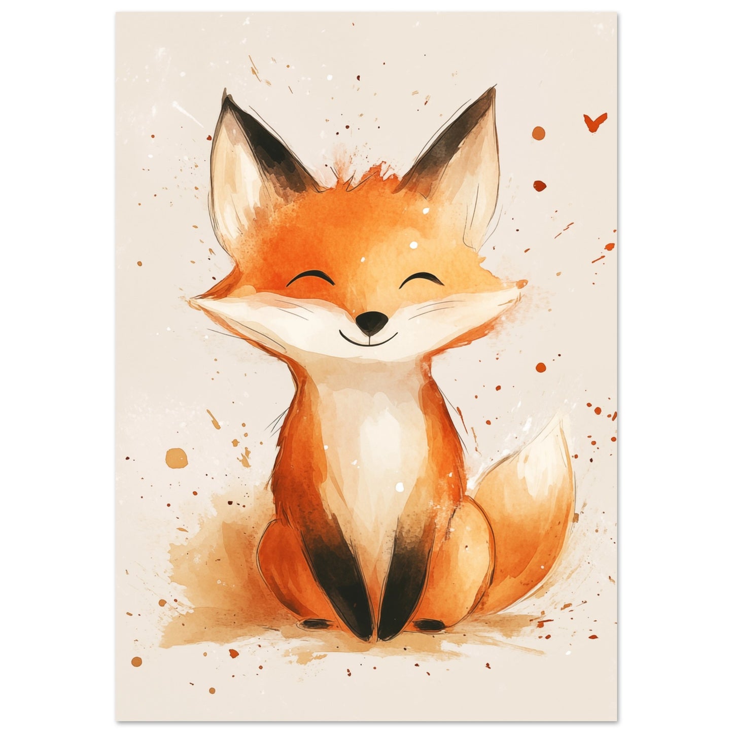 Cette adorable illustration d'un renard souriant, réalisée dans un doux aspect aquarelle, apporte joie et espièglerie à n'importe quelle pièce. Le renard joyeux, avec ses couleurs chaudes et son design détaillé, est idéal pour les chambres d'enfants ou comme accroche-regard coloré dans n'importe quel espace de vie. Les couleurs douces et la présentation harmonieuse font de cette affiche un complément parfait à toute atmosphère joyeuse et détendue.