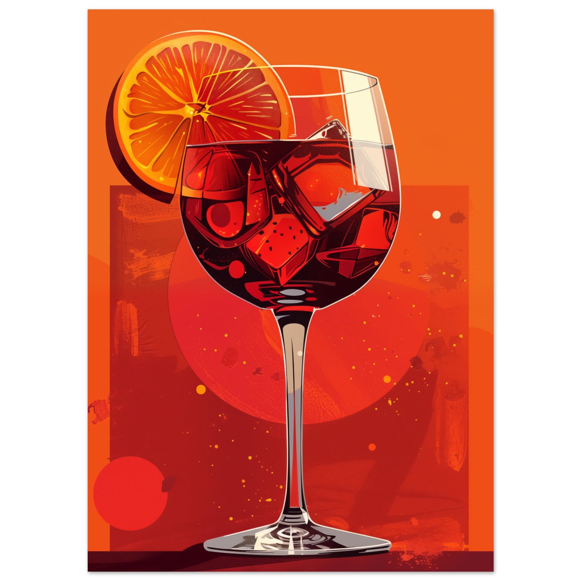 "Le Plaisir du Spritz Aperol" est une illustration vectorielle élégante qui capture l'essence fraîche et acidulée d'un Aperol Spritz. Les tons orange vif et la présentation élégante font de cette image une pièce décorative idéale pour les salons ou salles à manger modernes. Parfaite pour les amateurs de cocktails apéritifs classiques, cette œuvre d'art apportera une touche estivale et élégante à votre intérieur.