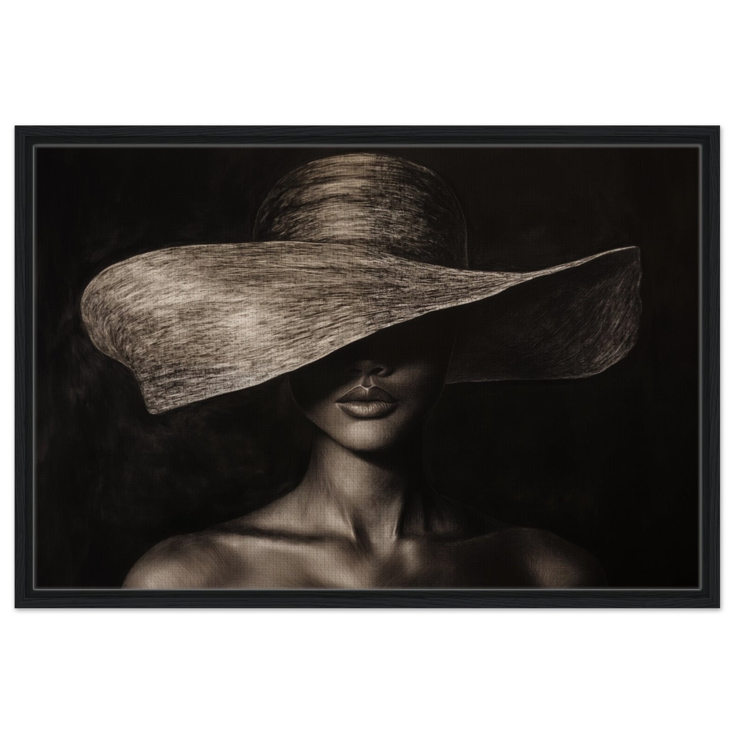 "Mystique Monochrome" est un portrait monochrome saisissant représentant une femme stylisée portant un chapeau surdimensionné. L'utilisation sophistiquée de la lumière et de l'ombre, associée aux contours doux, donne à l'image une apparence mystérieuse et élégante. La palette de couleurs sobres et les détails minimalistes font de cette œuvre d’art une pièce parfaite pour les espaces modernes et élégants qui préfèrent une esthétique subtile mais puissante. Idéal pour les amateurs d’art contemporain ayant un penchant pour l’élégance classique.