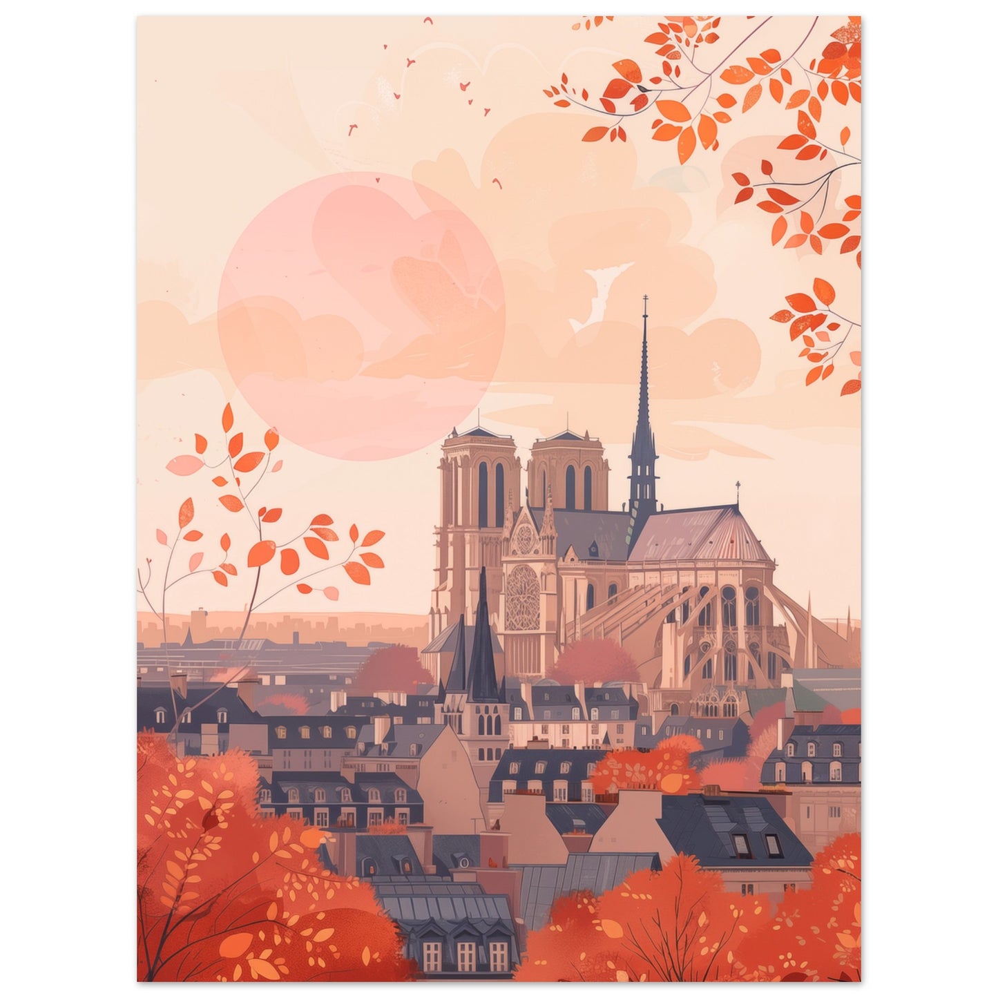 Cette œuvre d'art montre la beauté imposante de la cathédrale Notre-Dame, incrustée dans les tons chauds de l'automne. Le mélange de l’architecture gothique classique et des douces couleurs automnales confère à l’image une élégance et une profondeur particulières. Il capture la grandeur intemporelle de la cathédrale tout en exprimant le calme et la contemplation de la saison. Idéal pour les pièces qui doivent dégager une atmosphère harmonieuse et élégante.