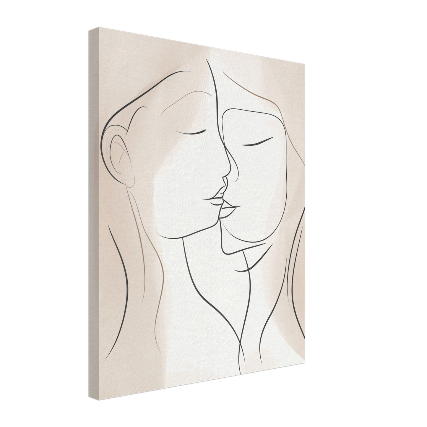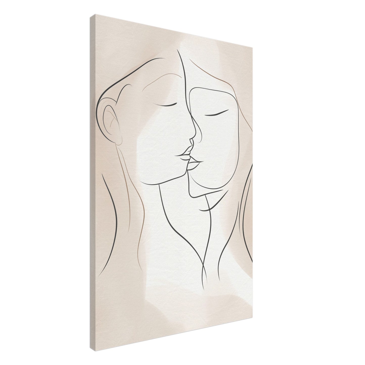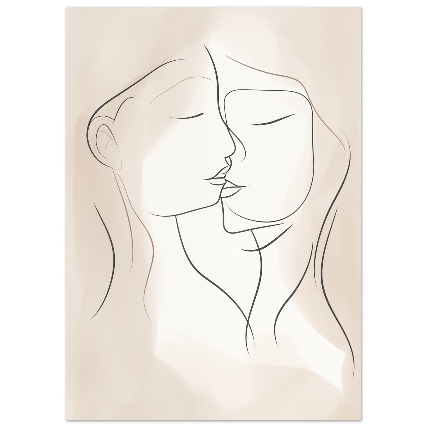 "Rencontre Harmonieuse" est une œuvre d'art minimaliste qui dépeint l'intimité et la tendresse des relations humaines à travers des lignes simples et fluides. Deux visages dans un doux baiser fusionnent dans une transition presque transparente, les lignes extérieures délimitant le contour de leurs traits et les lignes intérieures symbolisant leur lien étroit. La coloration subtile de l’arrière-plan souligne la chaleur et la profondeur du moment. " Harmonious Encounter " reflète la beauté des relations humaines et est une ode à l'amour et aux moments calmes d'être ensemble.