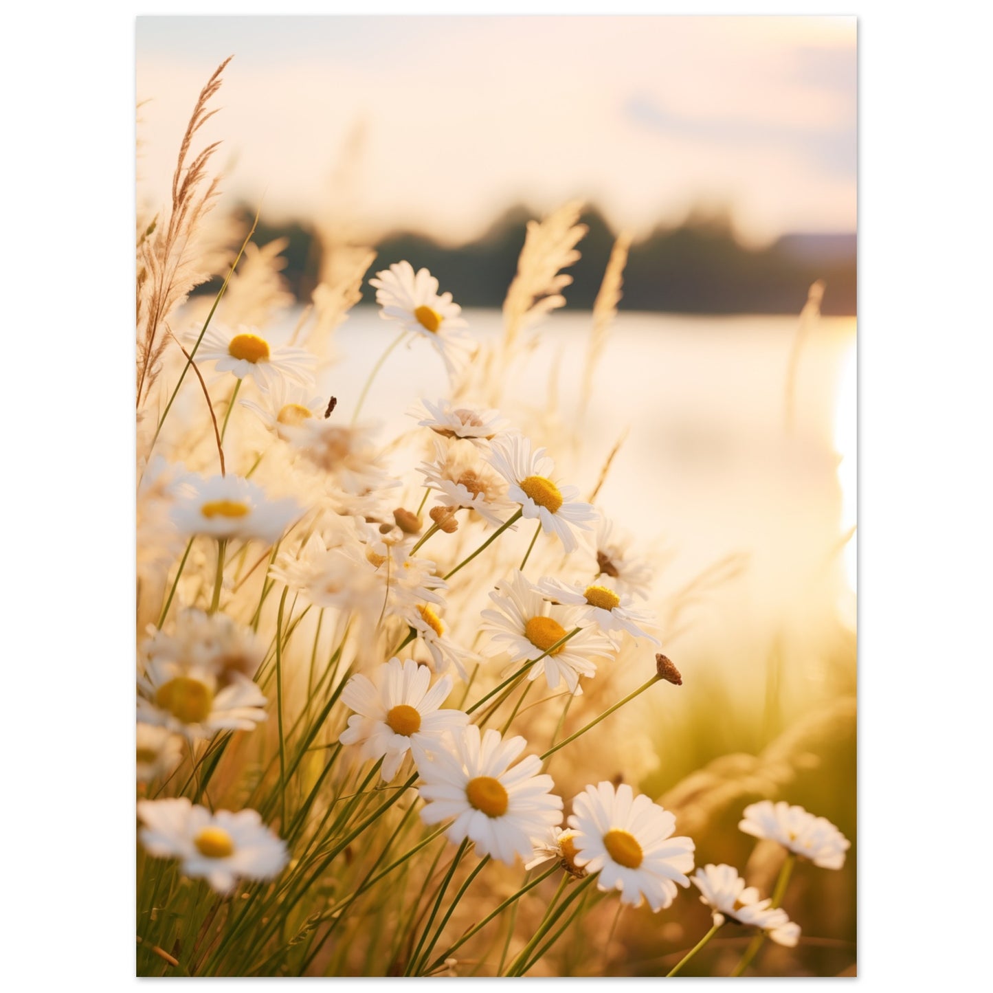 "Soleil du Soir et Marguerites" capture le moment magique où les derniers rayons du soleil de la journée effleurent un champ de marguerites sauvages. Les couleurs chaudes du coucher de soleil baignent la scène d’une lumière dorée, créant une scène pleine de paix et d’harmonie. Cette image est une expression de la joie de vivre et de la beauté simple de la nature et apporte une énergie chaleureuse et positive à n'importe quelle pièce.