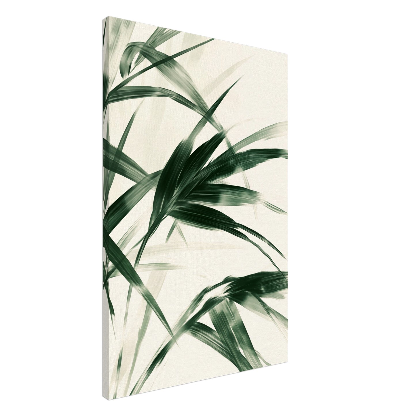 Dieses minimalistische Kunstwerk zeigt sanft geschwungene Palmblätter in harmonischen Grüntönen. Die abstrakte Komposition vermittelt Ruhe und Naturverbundenheit, perfekt für moderne und stilvolle Innenräume.