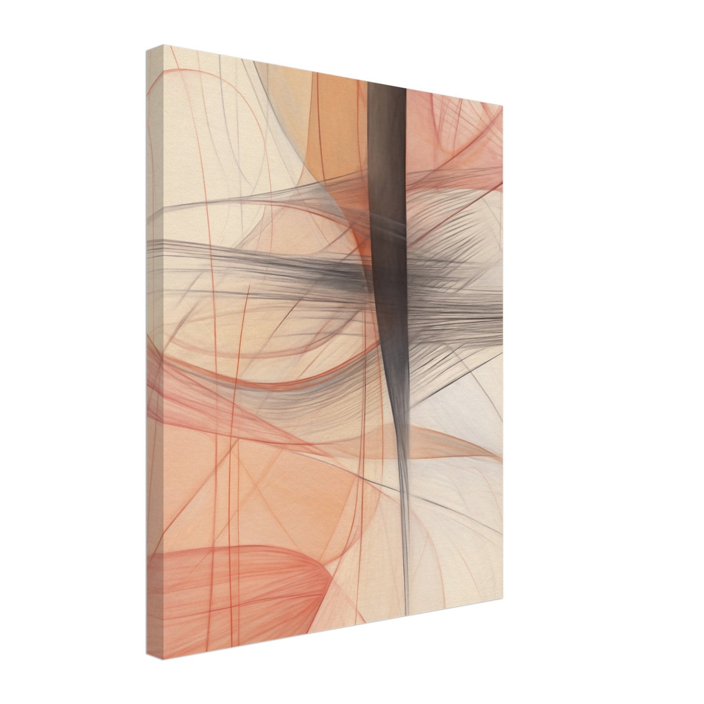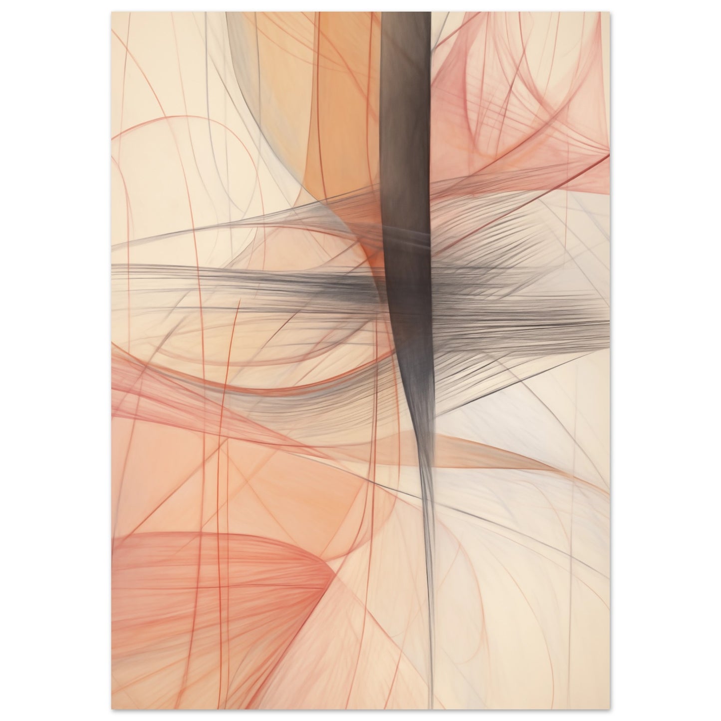 "Seelenflüstern" ist ein abstraktes Kunstwerk, das die stille Kommunikation zwischen verbundenen Seelen in sanften, fließenden Linien und warmen Farbtönen einfängt. Zarte Linien in Karamell, Schiefergrau, Rosa und Creme verweben sich wie Fäden im Wind und schaffen eine harmonische Verbindung, die an einen stillen Dialog erinnert. Die Komposition vermittelt eine tiefgründige, emotionale Harmonie und lädt den Betrachter ein, in die eigene Seele hineinzuhorchen. Ideal für Räume, die Ruhe und Reflexion fördern.